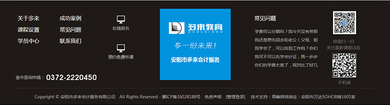安陽市多來會計服務有限公司是由河南多來教育集團和河南因心財務之家領導下首創(chuàng)一站式會計培訓、企業(yè)注冊、代理記賬、商標注冊、品牌策劃營銷等于一體的多元化企業(yè)會計服務平臺。致力于為中小型企業(yè)服務,資源整合,培訓出會計人才,為中原崛起助力、打造河南具影響力的企業(yè)服務平臺。