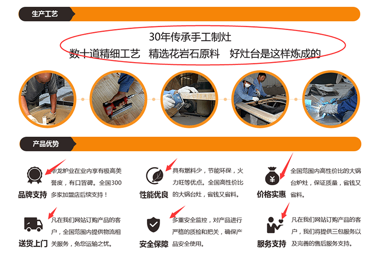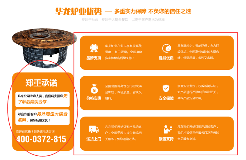 華龍爐業(yè)大鍋臺設(shè)備一直憑著“以質(zhì)取信、以誠取勝、以人為本”的三個(gè)原則,為客戶提供過硬的產(chǎn)品質(zhì)量、優(yōu)質(zhì)的售后服務(wù),滿足不同客戶的不同需求